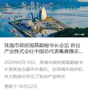 珠海市政府周昌副秘书长会见 万搏(中国)产业株式会社中国总代表亀倉隆志一行